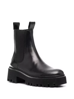 Runde Kappe, Stretcheinsätze an den Seiten, geriffelte Gummisohle. Material: Leder.