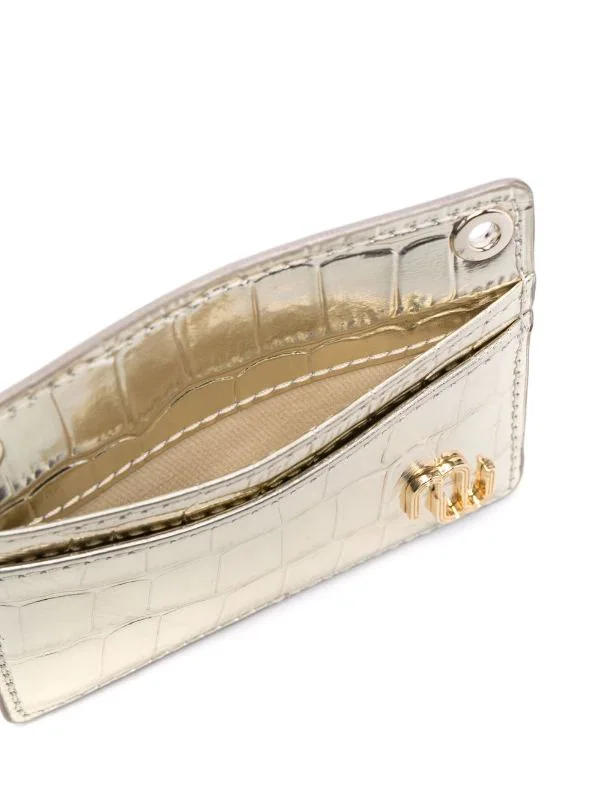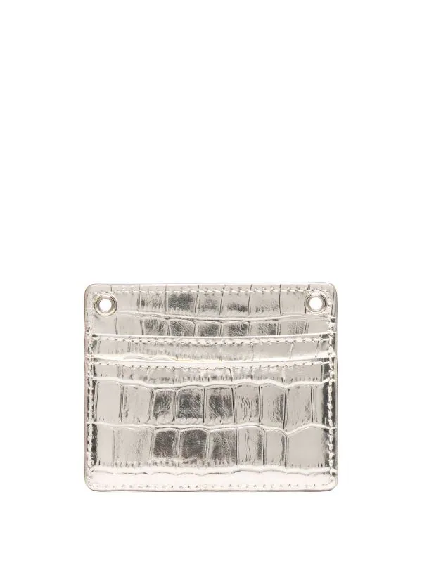 Goldfarbenes Logo-Schild, Kroko-Effekt, Kartenfächer, Kettendetails. Farbe: Gold.