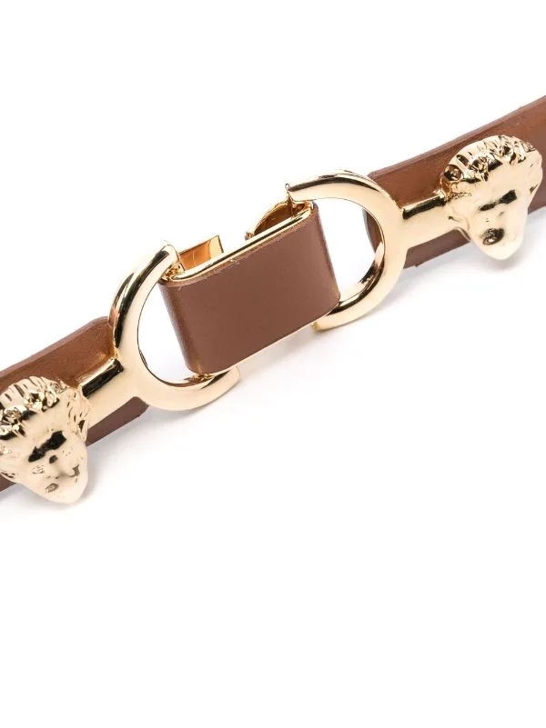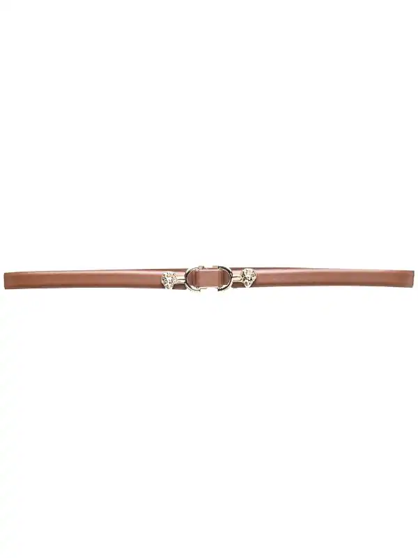 Goldfarbene Beschläge, Spangenverschluss, schmales Design.