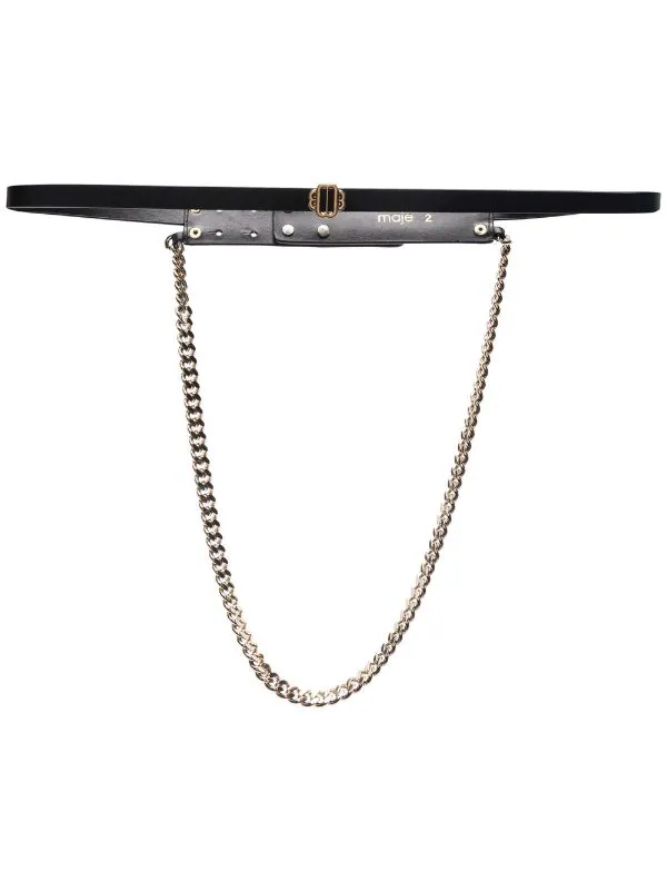 Goldfarbene Beschläge, Kettendetails, Schnallenverschluss mit Logo, goldfarbene Nieten. Material: Leder.