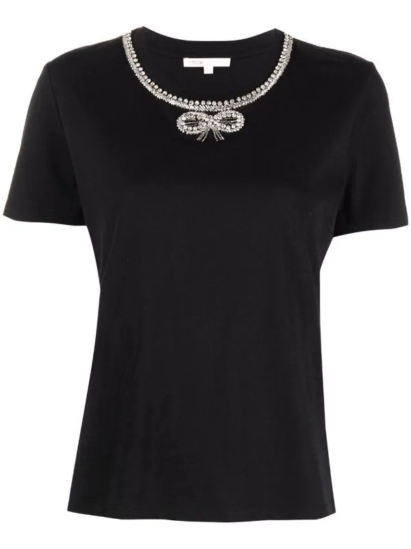 Schmucksteine, runder Ausschnitt, kurze Ärmel. Farbe: Schwarz.